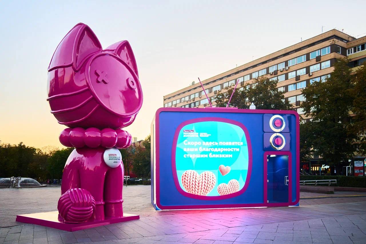 Акция «Скажи спасибо старшим»: размещаем сердечные пожелания на городских экранах и арт-инсталляции в Новопушкинском сквере.