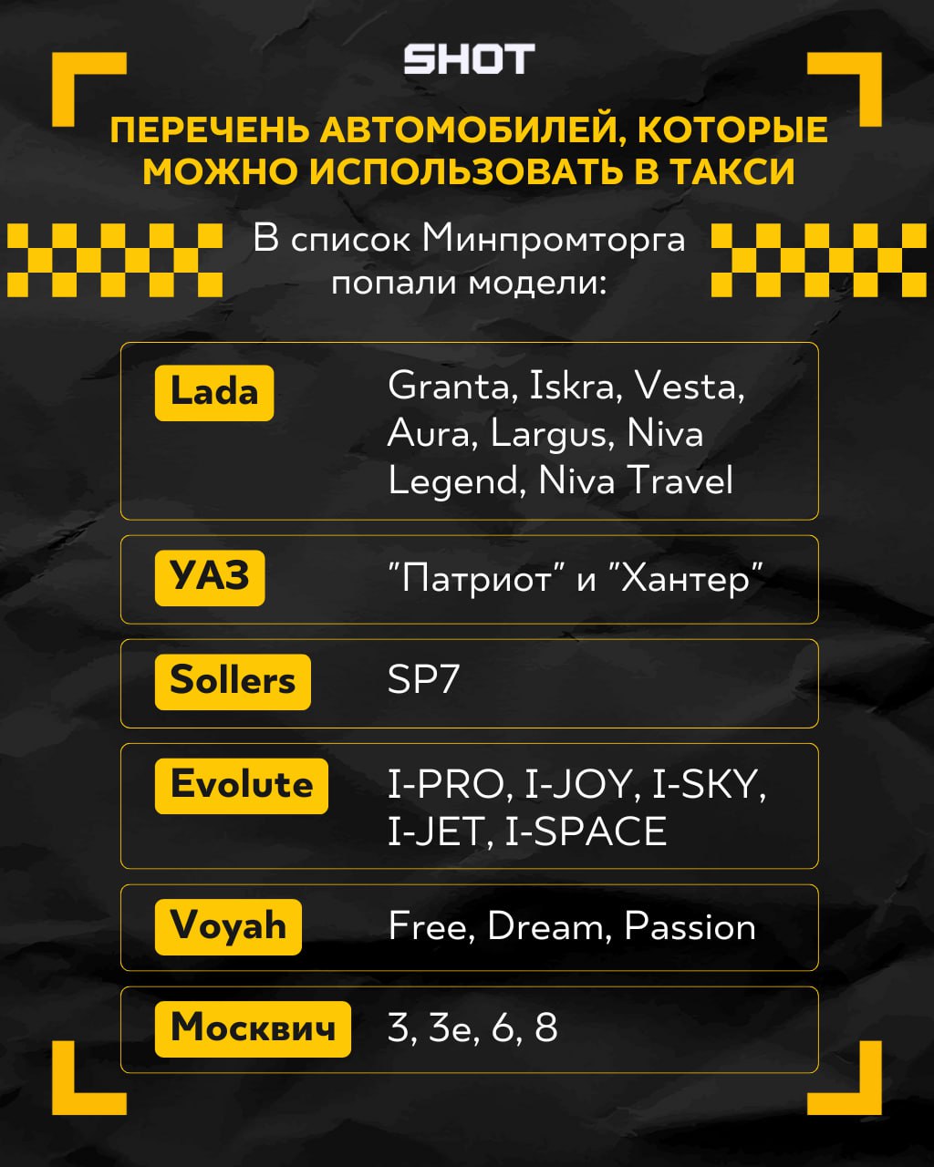 УАЗики, Нивы и Москвичи будут ездить в такси. Минпромторг представил список машин, которые можно использовать.