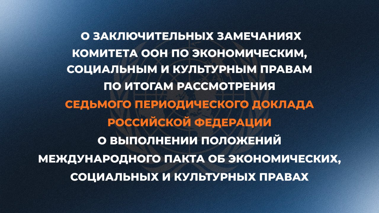 О заключительных замечаниях Комитета ООН по экономическим, социальным и культурным правам по итогам рассмотрения седьмого периодического доклада Российской Федерации о выполнении положений Международного пакта об экономических, социальных и культурных правах