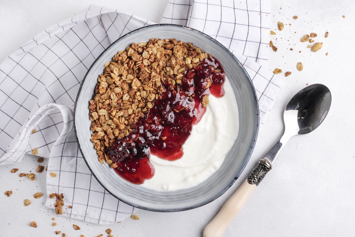 Приготовленная на кокосовом масле, гранола создаёт неповторимый аромат, а сочетание её с йогуртом и теплым ягодным соусом превращает каждую порцию в гастрономический шедевр.