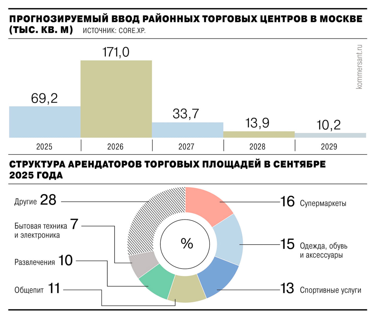 По итогам 2026 года объем ввода районных торговых центров в Москве может увеличиться почти втрое год к году, до 171 тыс. кв. м. Это отличается от динамики на рынке торговой недвижимости в целом: объем нового строительства торговых комплексов всех форматов к концу 2026 года может упасть на 70% год к году.