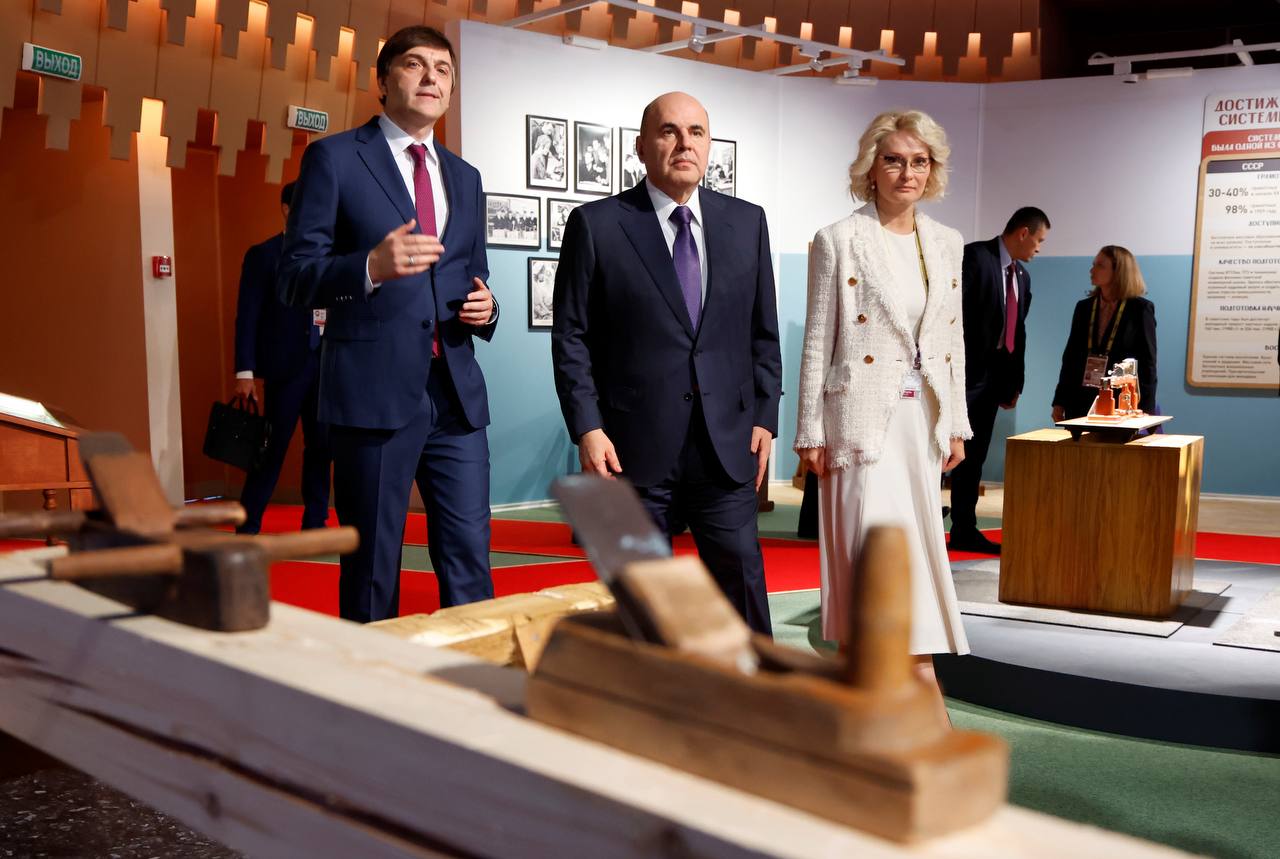 Виктория Абрамченко: Сегодня 85 лет СПО. Вместе с Председателем Правительства Михаилом Мишустиным посетили выставку о его истории, от Петра I до наших дней