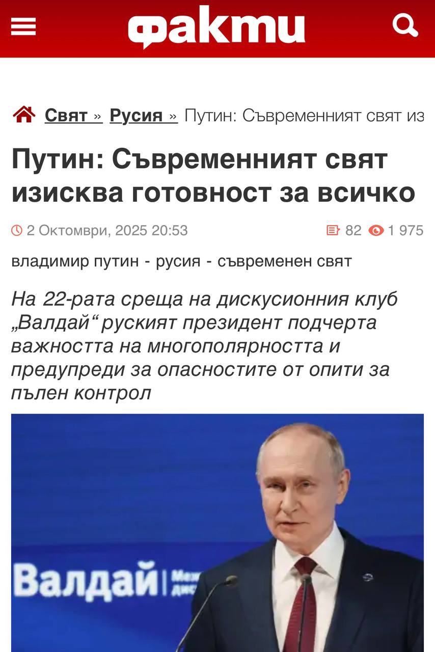 Болгарские «Факти» обратили внимание на высказывание президента о многополярности мира