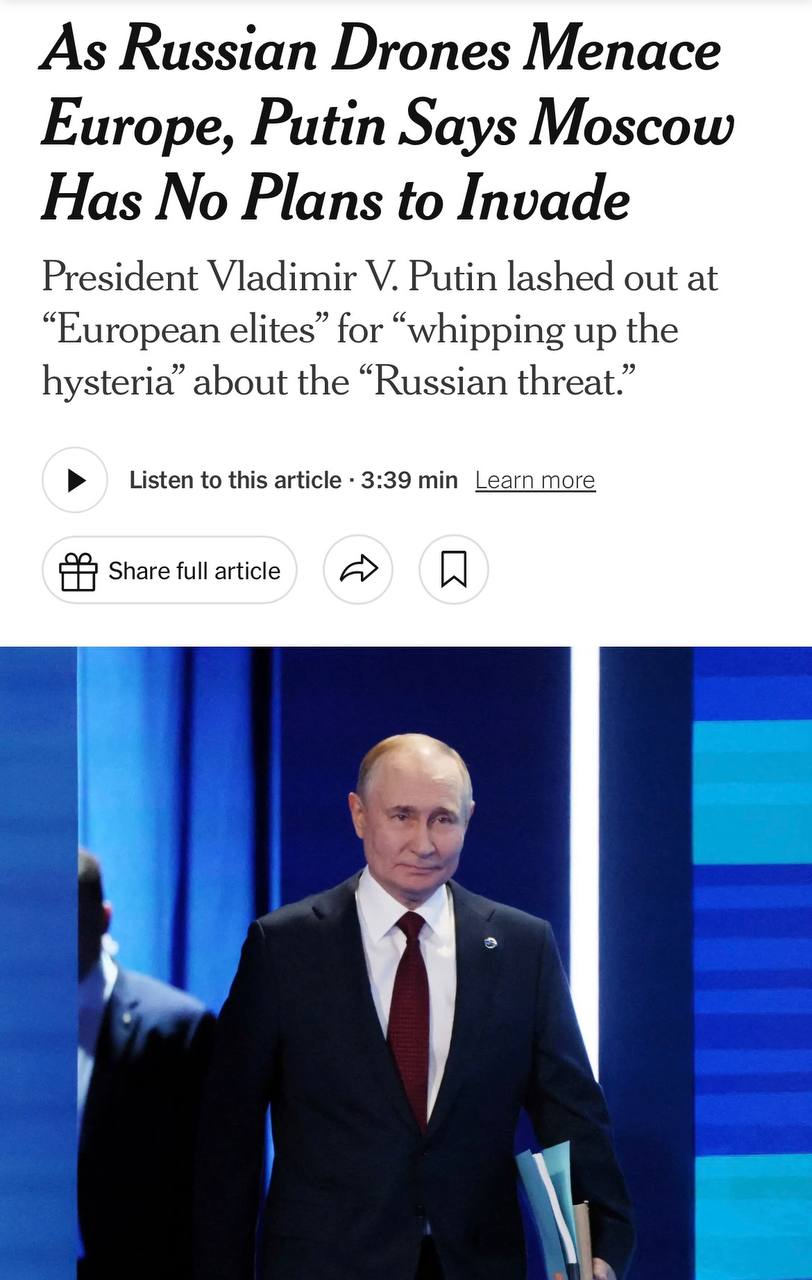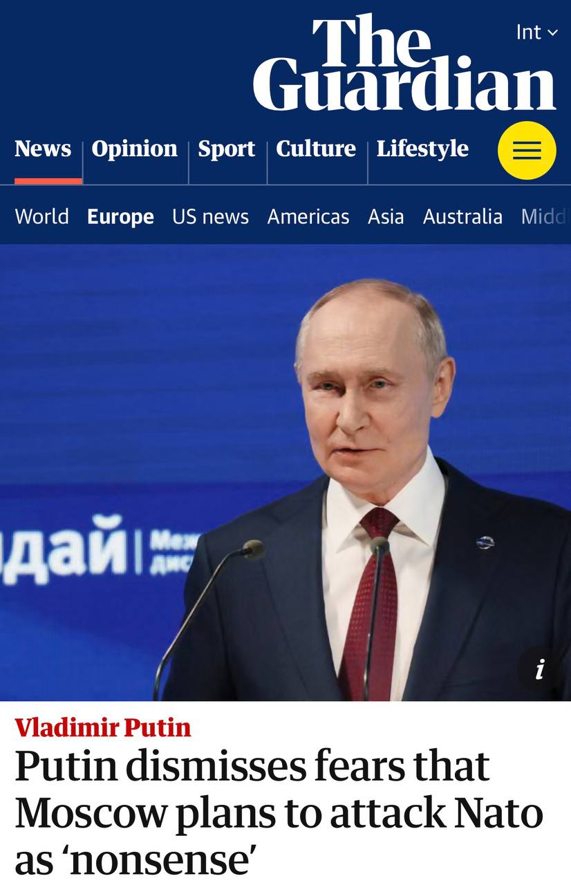 The New York Times тоже выделяет слова Путина о нежелании военного конфликта с альянсом