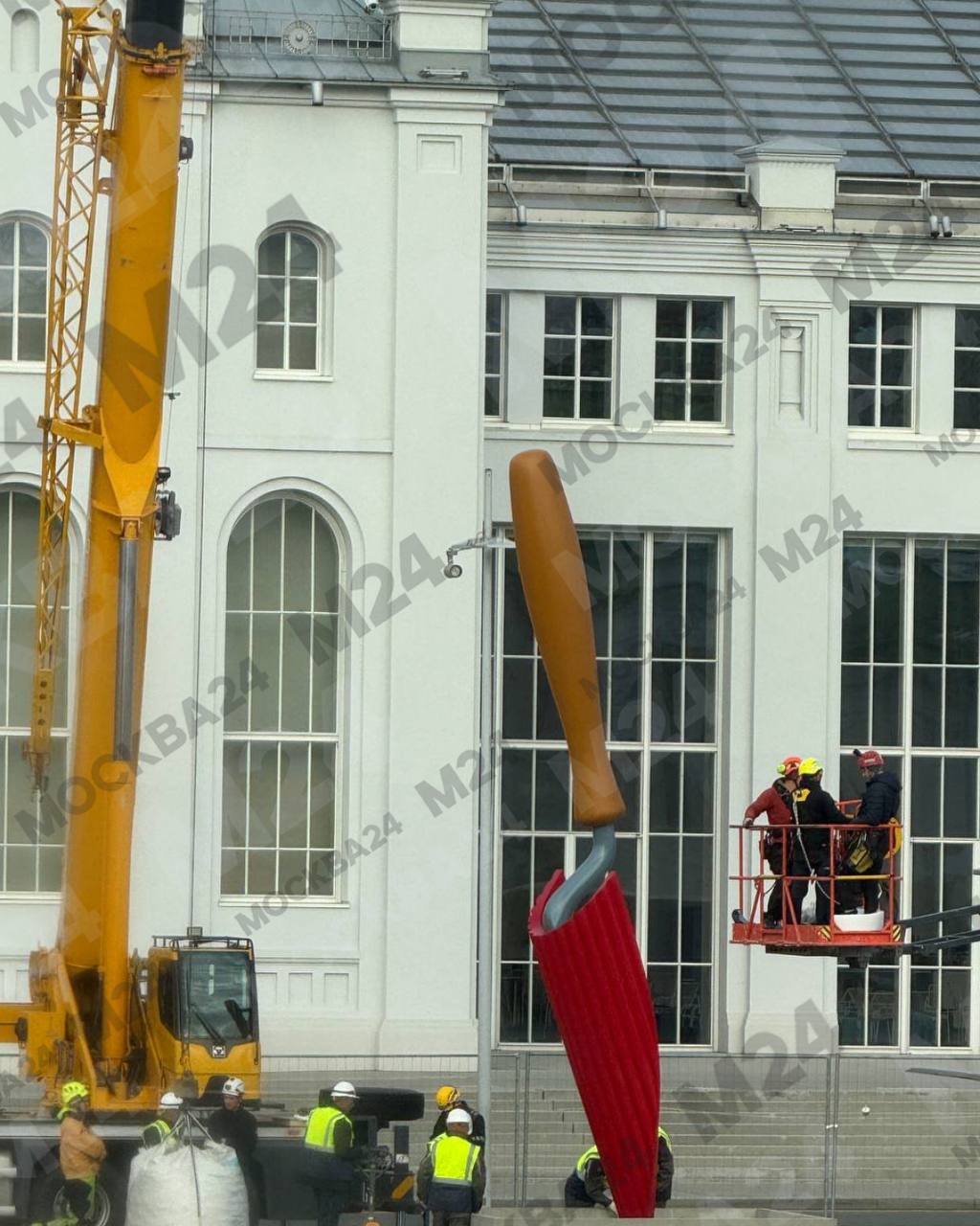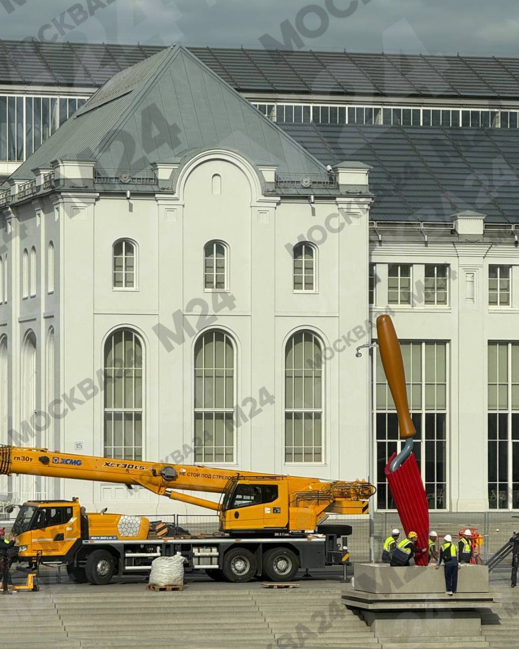 Рядом с «ГЭС-2» уже начали устанавливать новый арт-объект. Пока подробности держатся в секрете, но очевидцы уже запечатлели первые элементы композиции.