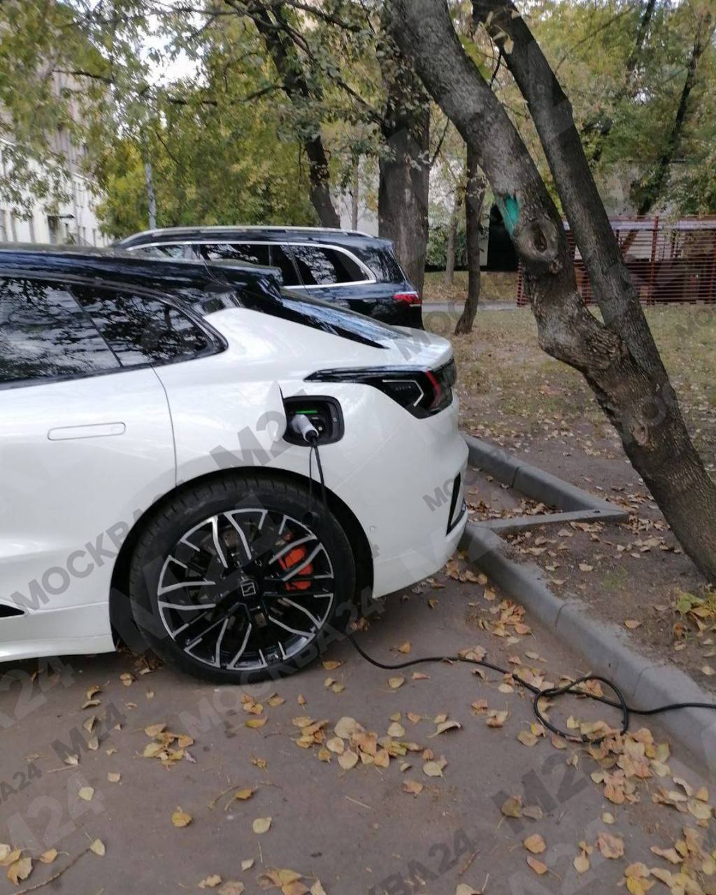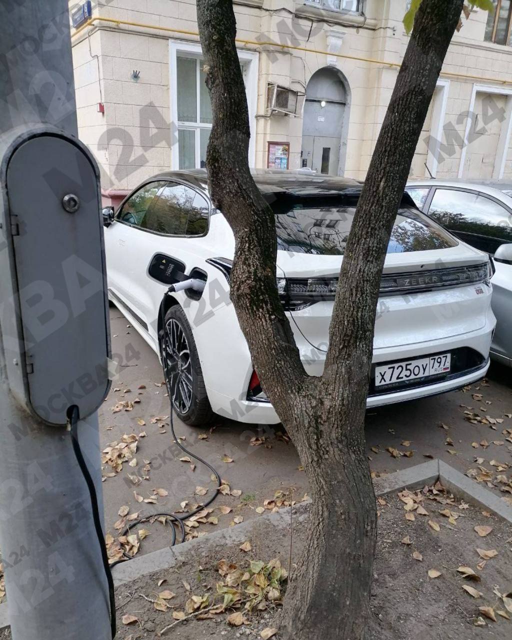 Очевидцы, проходившие мимо, не могли не обратить внимание на странно припаркованный автомобиль, от которого отходит кабель.