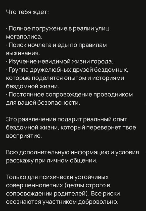 VIP-бездомность: в Москве за 20 тысяч рублей предлагают прожить день на улице.