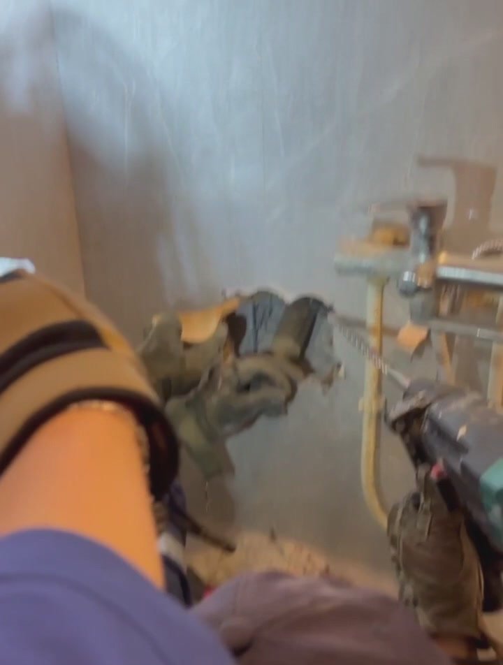 Вытащить животное сверху не получилось — слишком узко. В итоге управляющая компания и сердобольные жильцы разрешили просверлить стену в ванной квартиры на первом этаже.