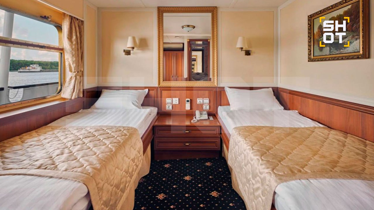 Накануне Брухунова с сыном и дочкой выдвинулись из Москвы в сторону Плёса на четырёхпалубном теплоходе премиум-класса. На корабле — ресторан, бар, фитнес-зал и библиотека. Как выяснил SHOT, проживание в двухместной каюте "делюкс", которую выбрала Татьяна, стоит 410 тысяч рублей. Такую же забронировала и для малых, но им чуть дешевле. Питание на теплоходе от шеф-повара — икорный квартет, осетрина, царские кулебяки и неограниченное количество вина.