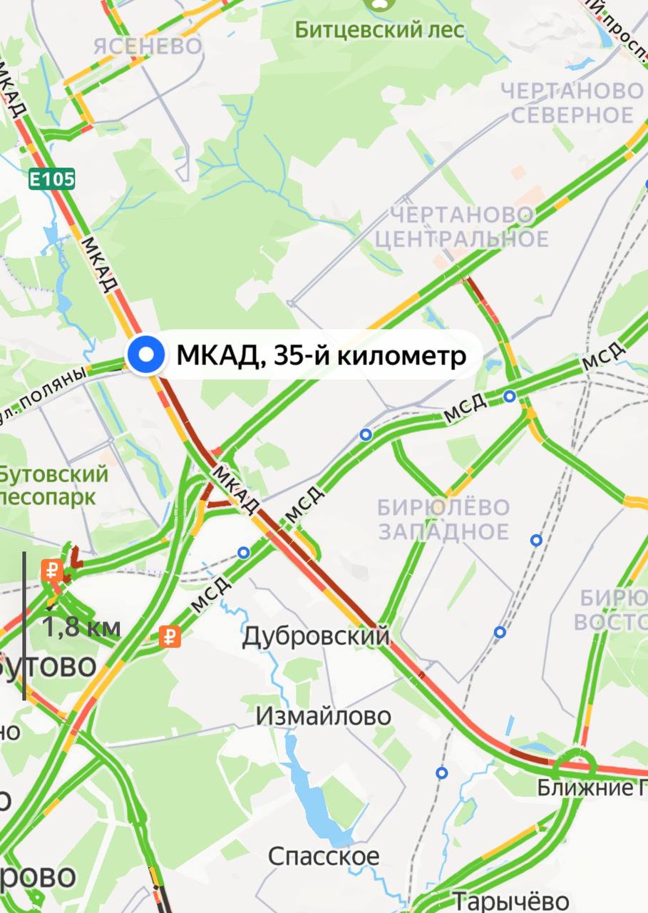 Почти на 7 километров сковало движение на МКАД. Всё из-за ДТП на 35-м километре.