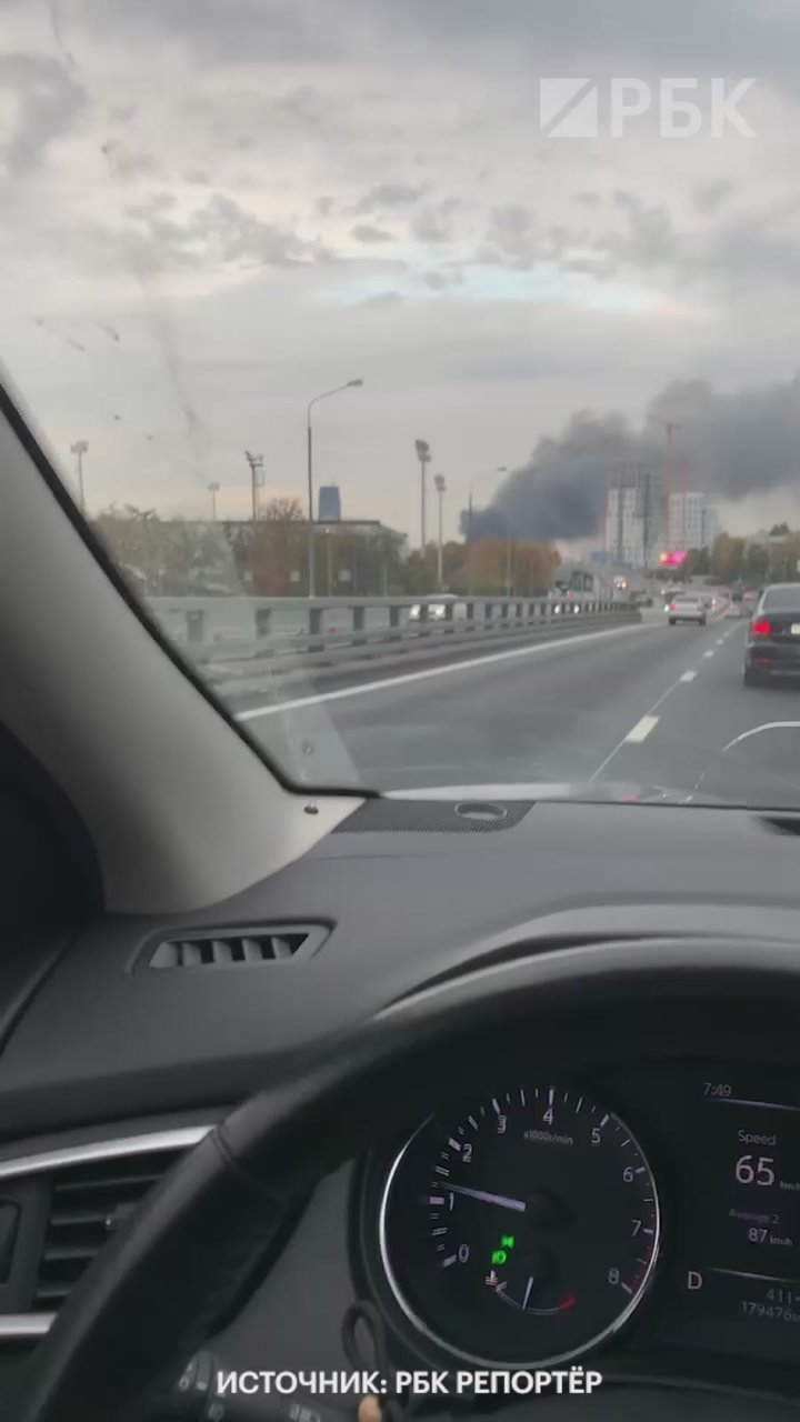 В районе Волгоградского проспекта в Москве виден большой столб черного дыма