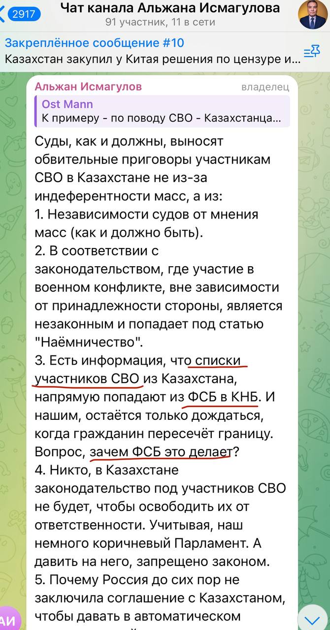 Ранее Альжан Исмагулов отметился призывами принести извинения руководству Азербайджана за крушение самолёта в Актау. Кроме того, Исмагулов утверждал что ФСБ передает КНБ Казахстана списки с именами граждан республики принимавших участие в СВО на стороне России, после чего возбуждались уголовные дела.