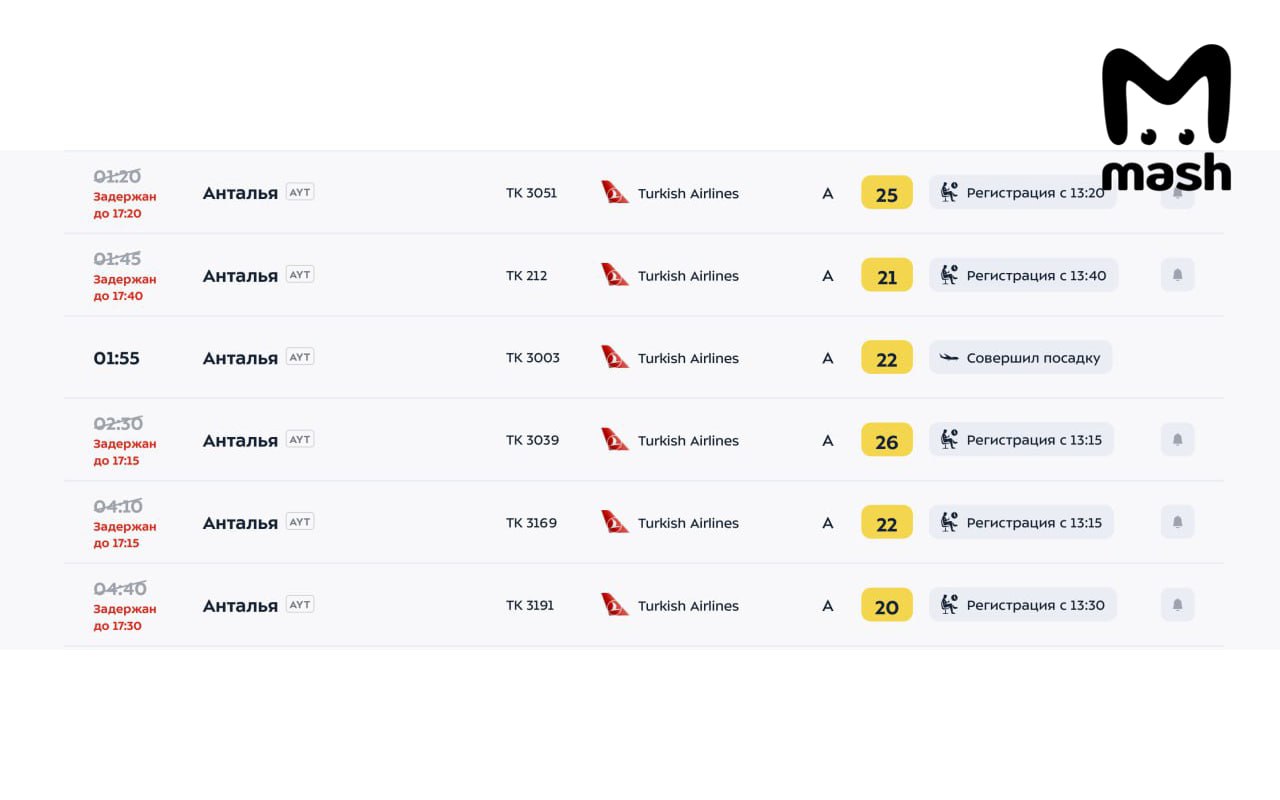 Минимум пять ночных рейсов из Москвы в Анталию отменили "Турецкие авиалинии". Предварительная причина — в турецком аэропорту нет электричества. Во Внукове сотни людей ждут своего вылета.