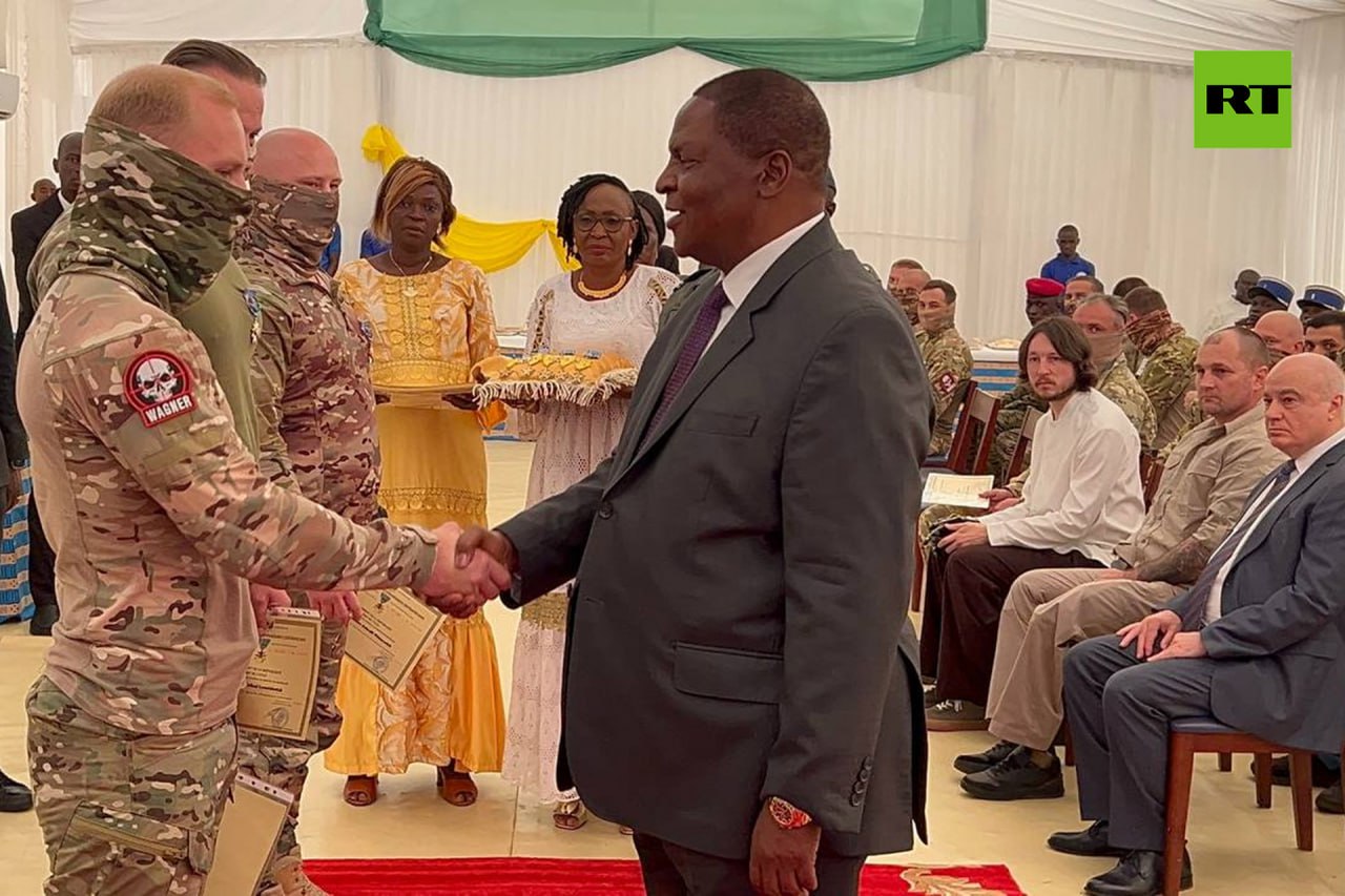 Президент ЦАР Туадера наградил российских инструкторов на торжественном мероприятии в честь восьми лет сотрудничества.