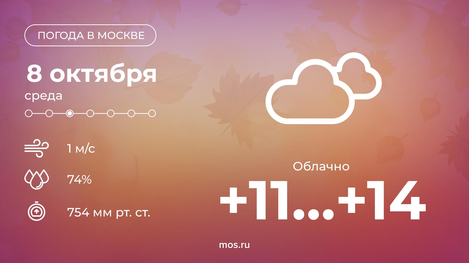Доброе утро! Сегодня в Москве будет пасмурно. Температура воздуха днем поднимется до +14 °С.