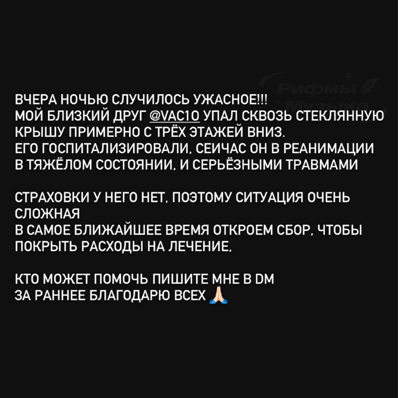 Скандальный рэпер Vacio в реанимации после падения с третьего этажа.