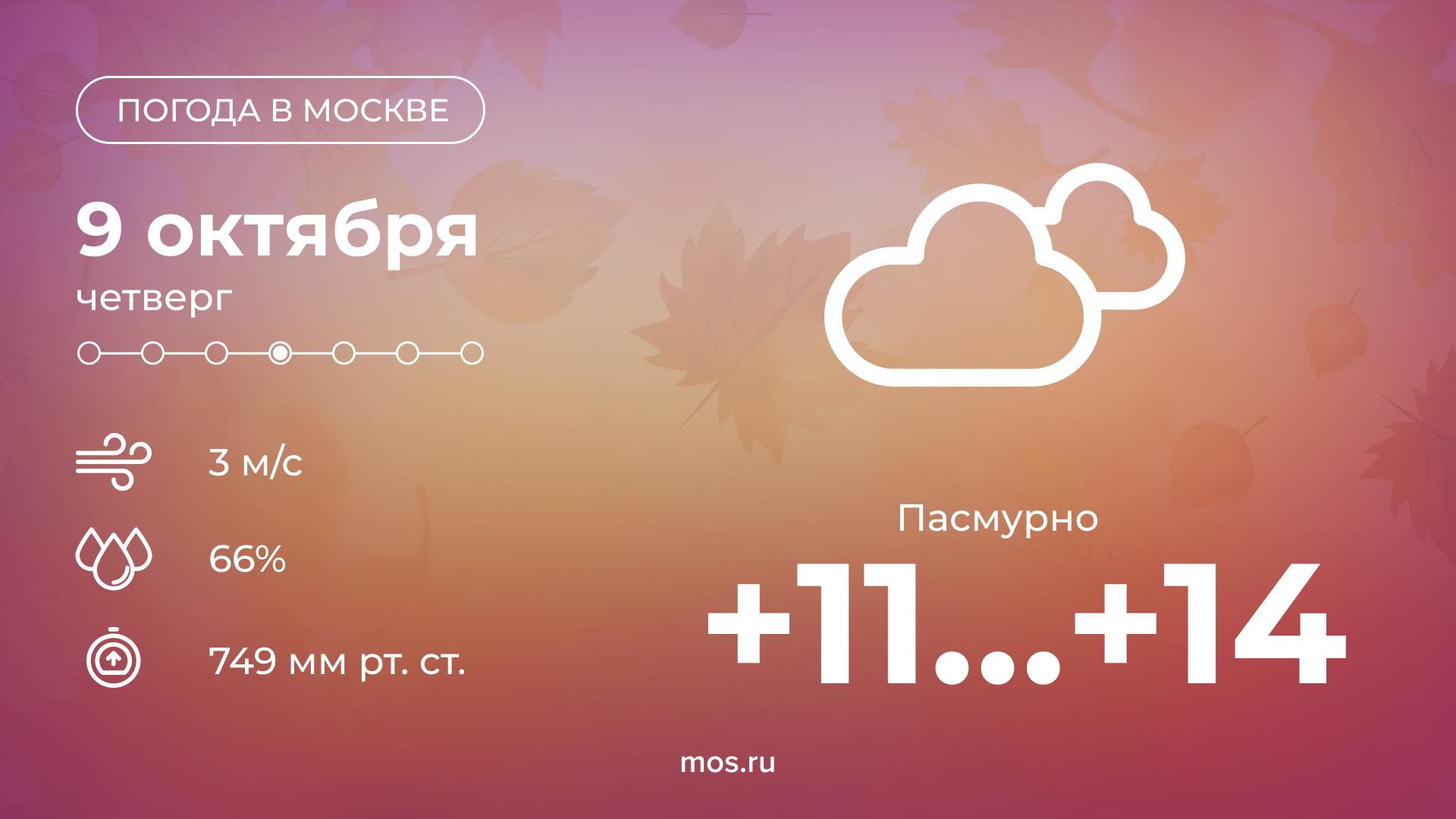 Доброе утро! Сегодня в Москве будет пасмурно. Температура воздуха днем поднимется до +14 °С.