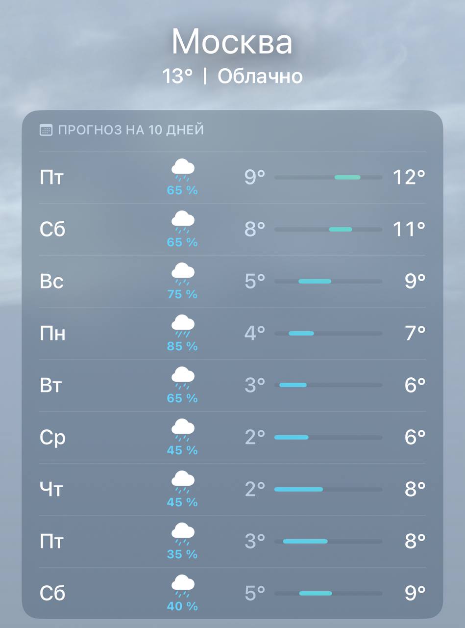 Ливни понизят температуру в городе и выльют на столицу почти половину октябрьской нормы осадков.