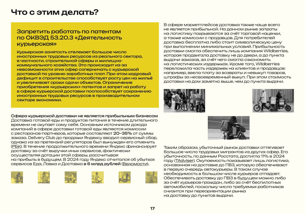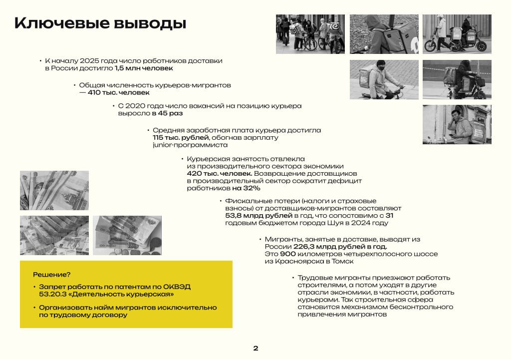 Курьерская доставка стала сферой, которая оттягивает трудовые ресурсы из производственного сектора — со строек и заводов. Мигрантов переманивает более легкая работа, отсутствие необходимости квалификации и более высокие зарплаты. Из-за этого за год из страны выводится более 226 миллиардов рублей в страны СНГ.