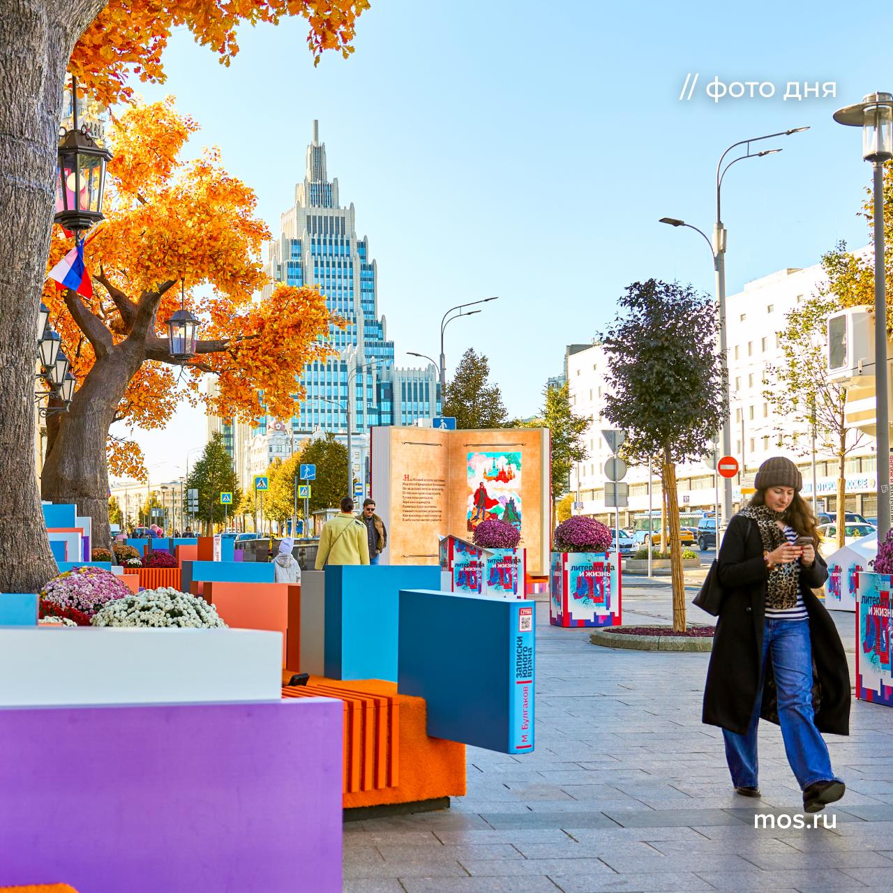 Загляните в литературное пространство на Садовой-Самотечной улице. Здесь установили огненно-рыжие деревья, необычные скамейки, а еще трехметровую книгу.