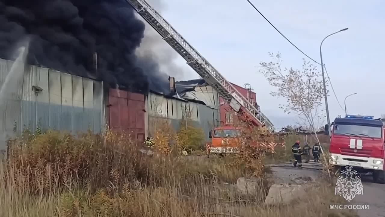Мощный пожар тушат с утра в Электростали: полыхает склад с пенопластом. Устрашающий чёрный дым — в комплекте.