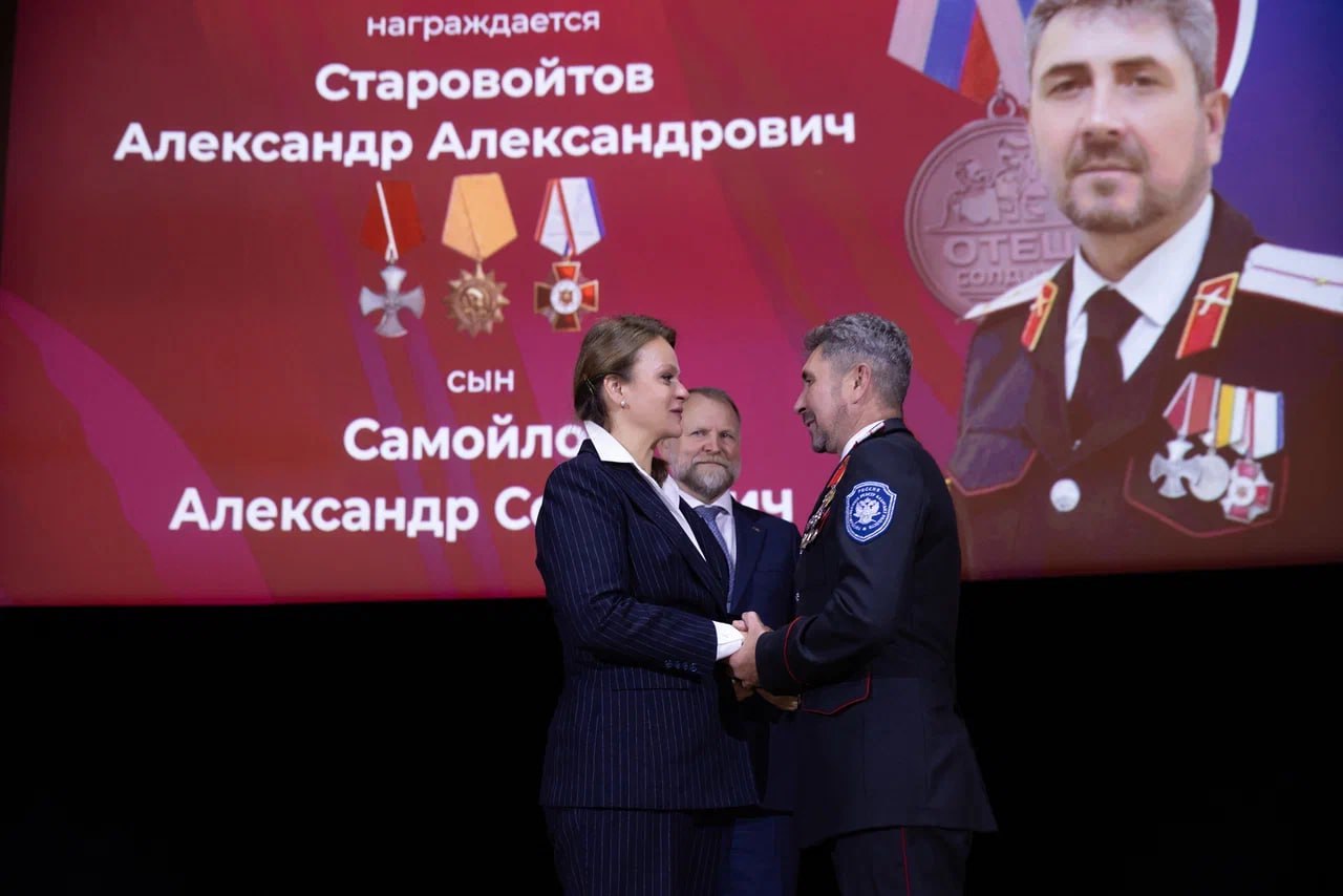"Мы часто встречаемся с героями и их отцами. Вручение награды общественного признания — это символ нашей гордости за их подвиги и поддержку. Спасибо отцам-героям за воспитание достойных сыновей, которые стали опорой для нашей страны", — сказала статс-секретарь — замсинистра обороны РФ, председатель фонда "Защитники Отечества" Анна Цивилева.