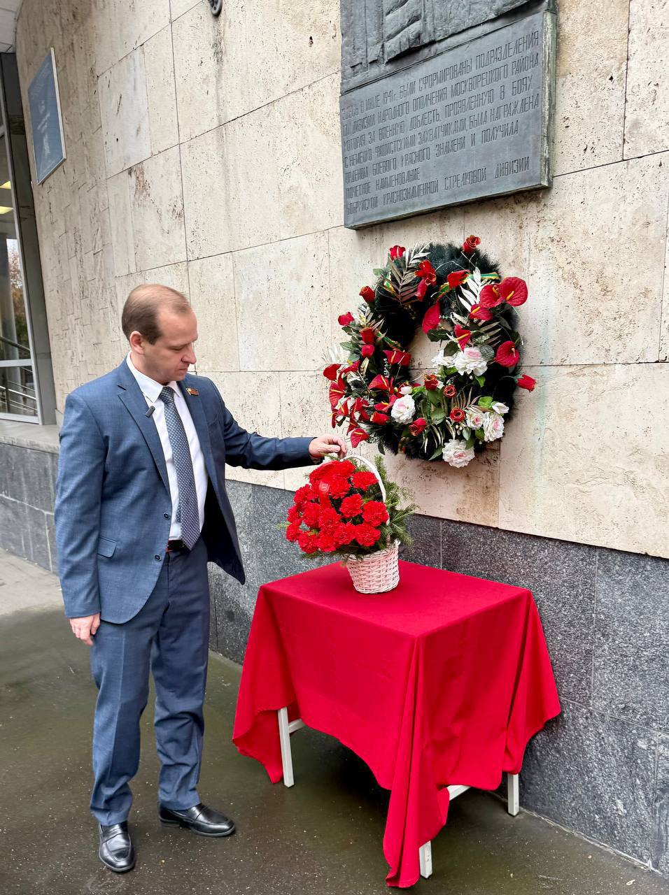 Возложил цветы к мемориальной доске в память о формировании подразделения 17-й дивизии народного ополчения Москворецкого района и почтил память о подвиге воинов, отстоявших Москву!