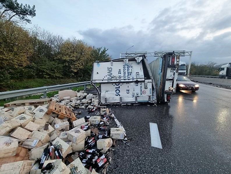 В районе Железноводска перевернулся следовавший из Грузии грузовик с вином