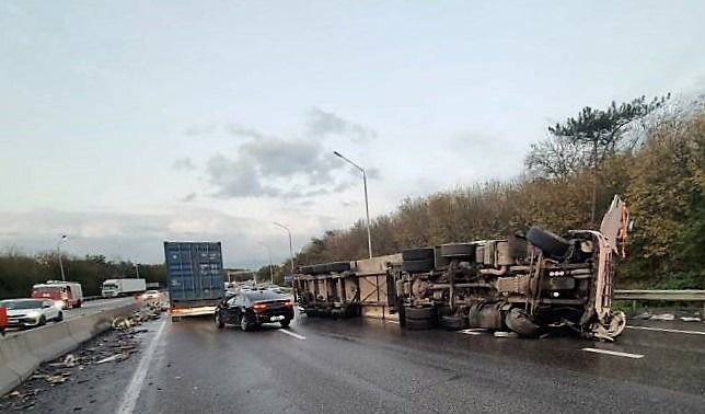 Предварительно, 38-летний водитель грузовика Volvo не справился с управлением и столкнулся с бетонным разделительным ограждением. В результате происшествия никто не пострадал. Однако перевозимый груз рассыпали по проезжей части, чем затруднил движение.