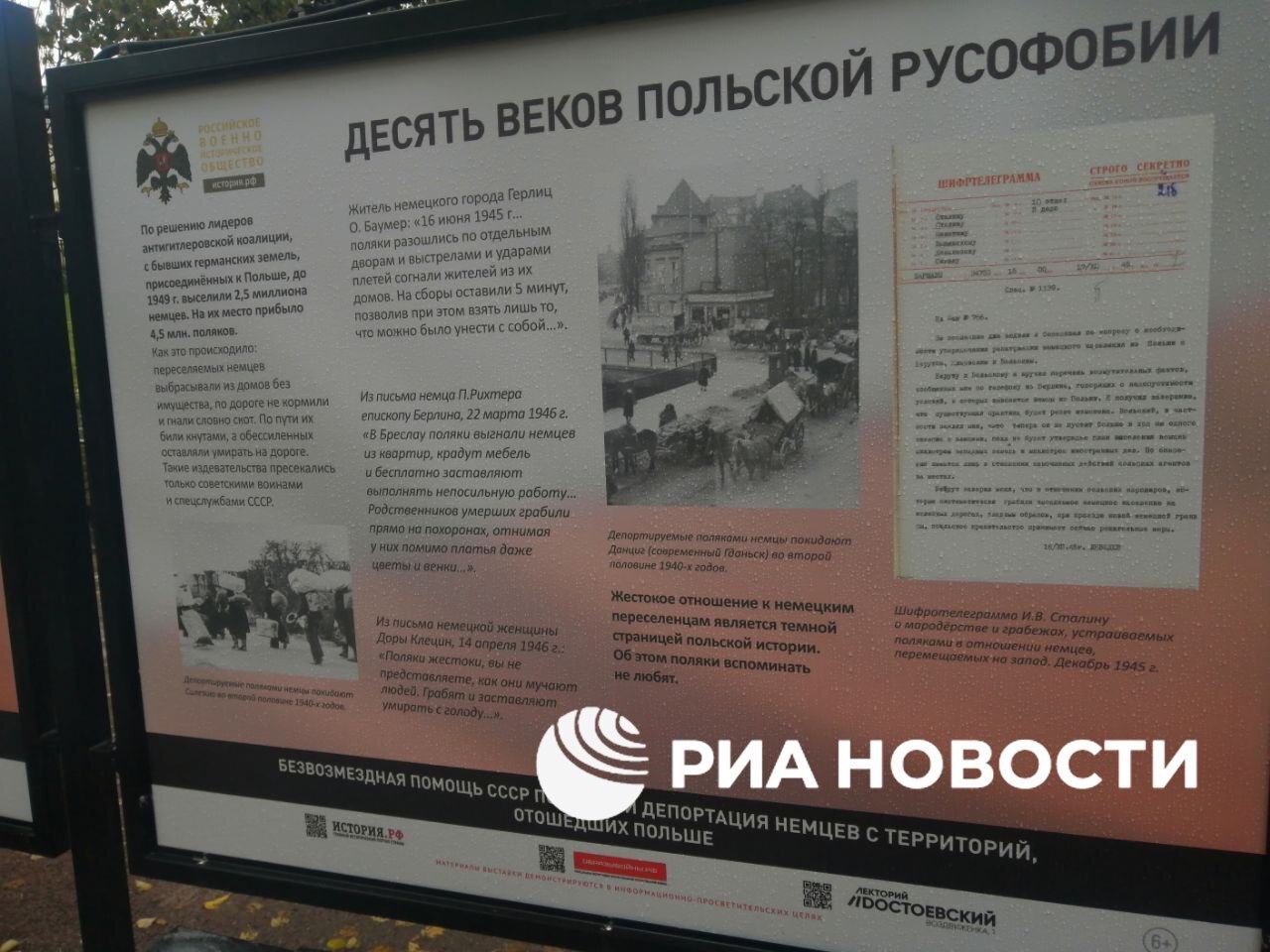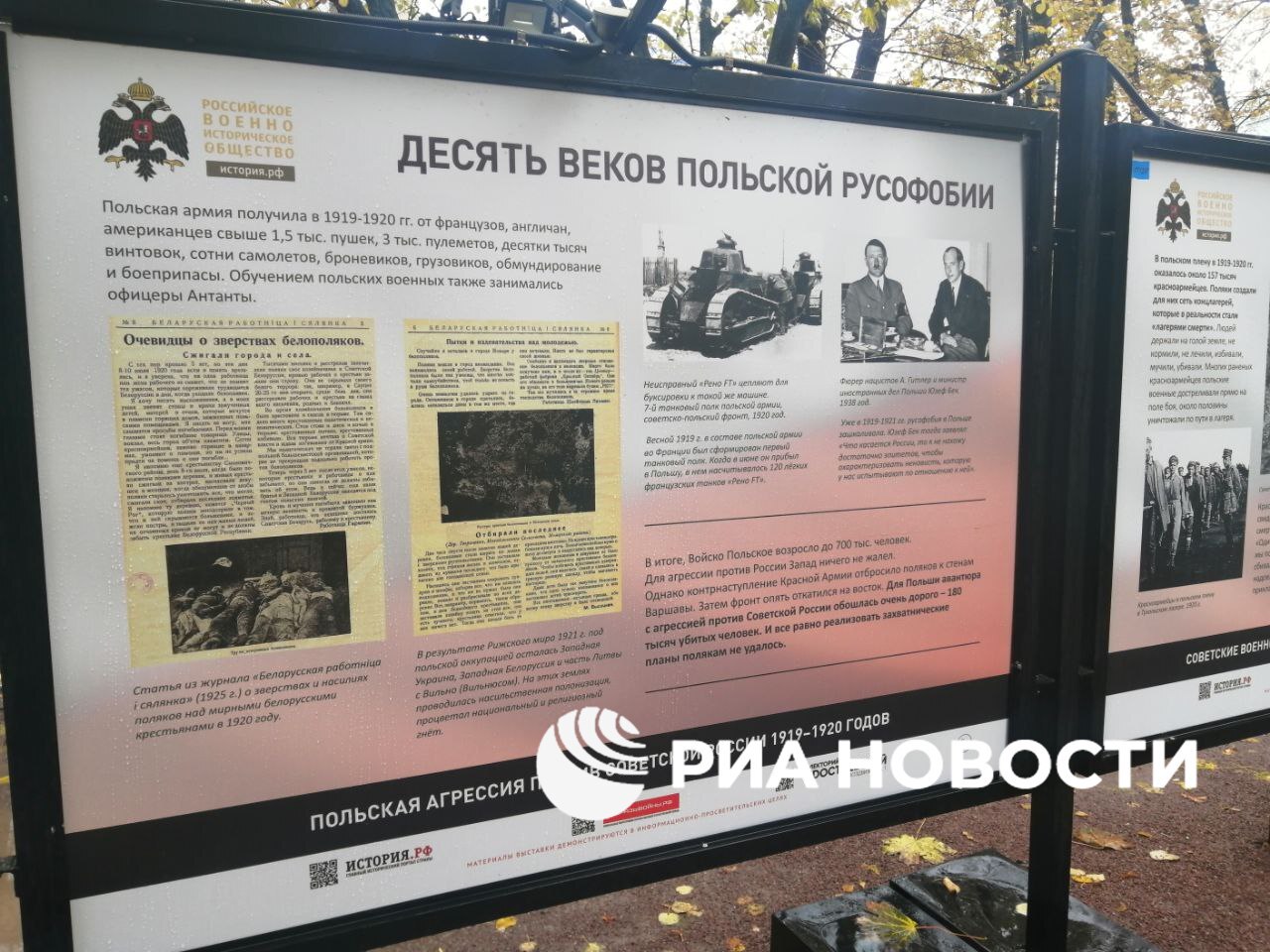 Выставка "Десять веков польской русофобии" готовится к открытию на Гоголевском бульваре в центре Москвы, передает корреспондент РИА Новости.