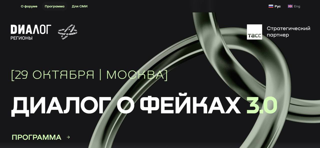 «Диалог о фейках 3.0» - третий международный форум, пройдет в Москве 29 октября с.г. при поддержке МИД России, с участием международных экспертов, представителей федеральных органов исполнительной власти, СМИ и участников бизнес-сообществ.