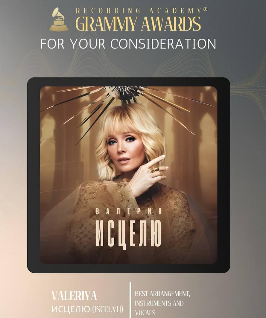 Певица Валерия поборется за Грэмми — трек артистки «Исцелю» прошел отборочный этап премии.