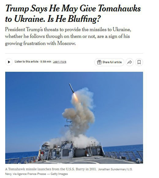 Пентагон столкнулся с трудностями поставки ракет «Томагавк» Украине