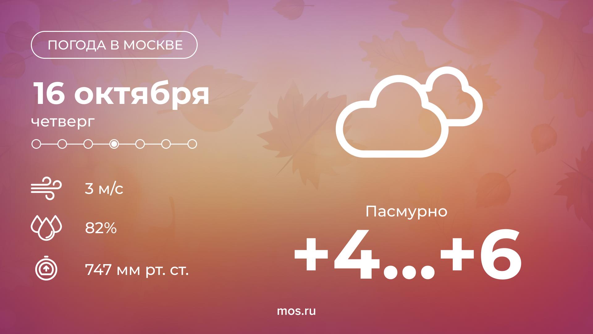 Доброе утро! Сегодня в Москве будет пасмурно. Температура воздуха днем поднимется до +6 °С.