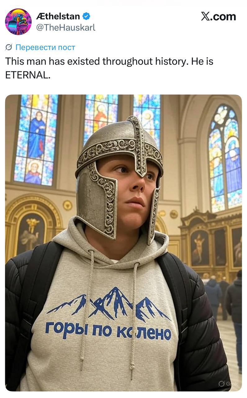 Молодой россиянин в толстовке с надписью «Горы по колено» стал героем мировых соцсетей.
