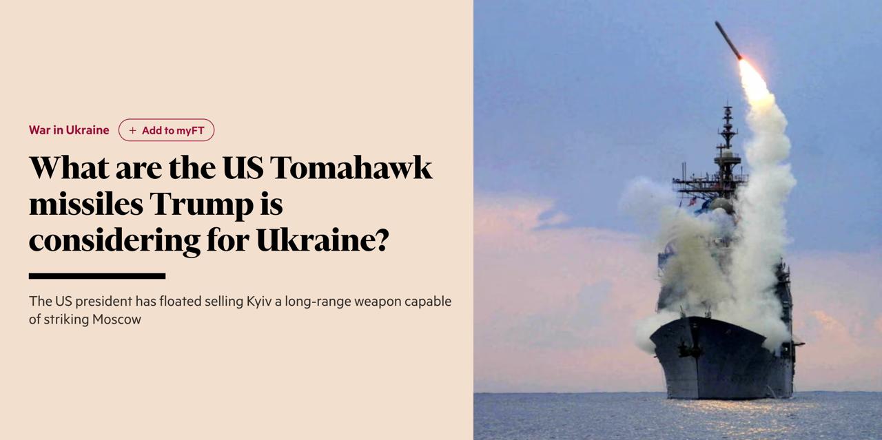 FT: Томагавки для Украины будут запускать сами американцы — Киев не допустят к пульту