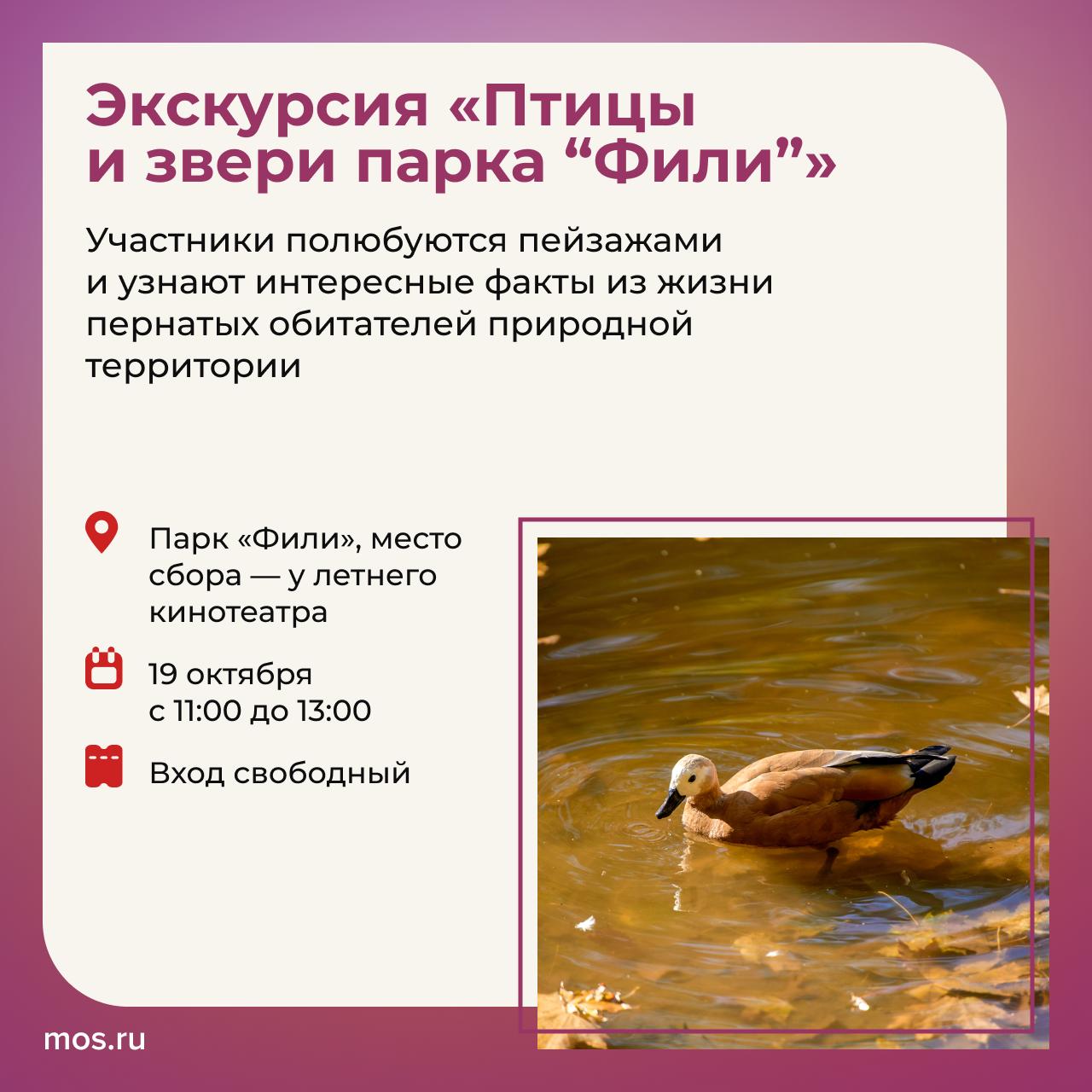 Чем заняться в эти выходные в московских парках? 18 и 19 октября посетителей ждут мастер-классы, экскурсии, спортивные мероприятия и многое другое! Подробности смотрите в наших карточках.