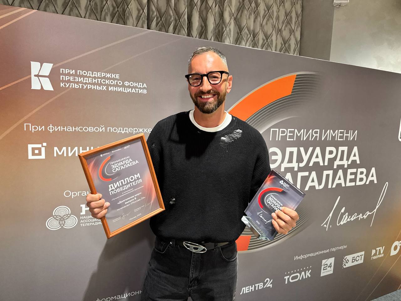 Мы взяли награду! Телеканал Москва 24 стал призёром премии имени Эдуарда Сагалаева «Герой нашего времени». Её вручили нашему ведущему — Станиславу Кулику.