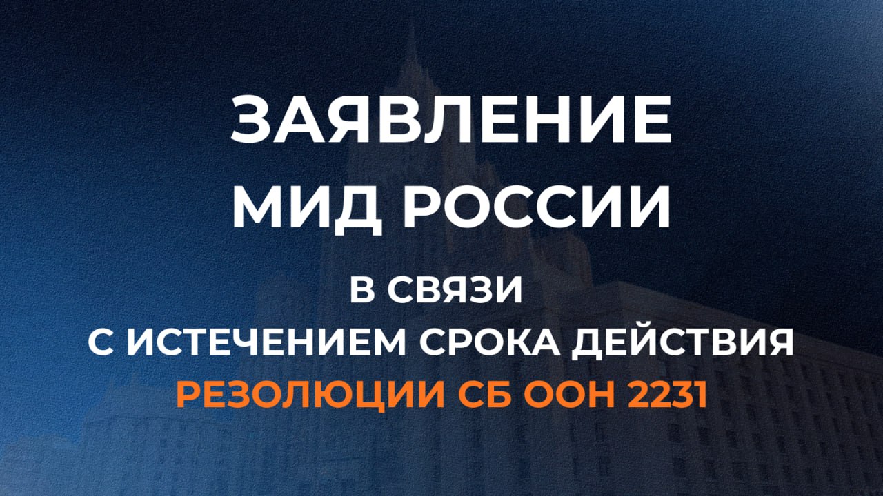 Заявление МИД России в связи с истечением срока действия резолюции СБ ООН 2231(17 октября 2025 года)