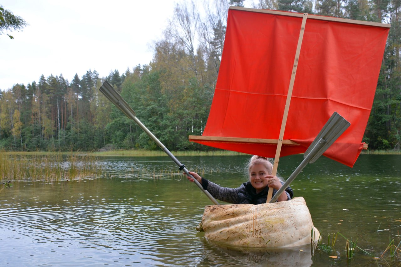 Петербурженка Юлия Богданова отправилась в заплыв по озеру Стречино на гигантской тыкве, которую вырастила на даче в Псковской области. Кстати, весит такой «корабль» 221 килограмм. Так что из тыквы может получиться не только карета, но и вполне серьезное судно!