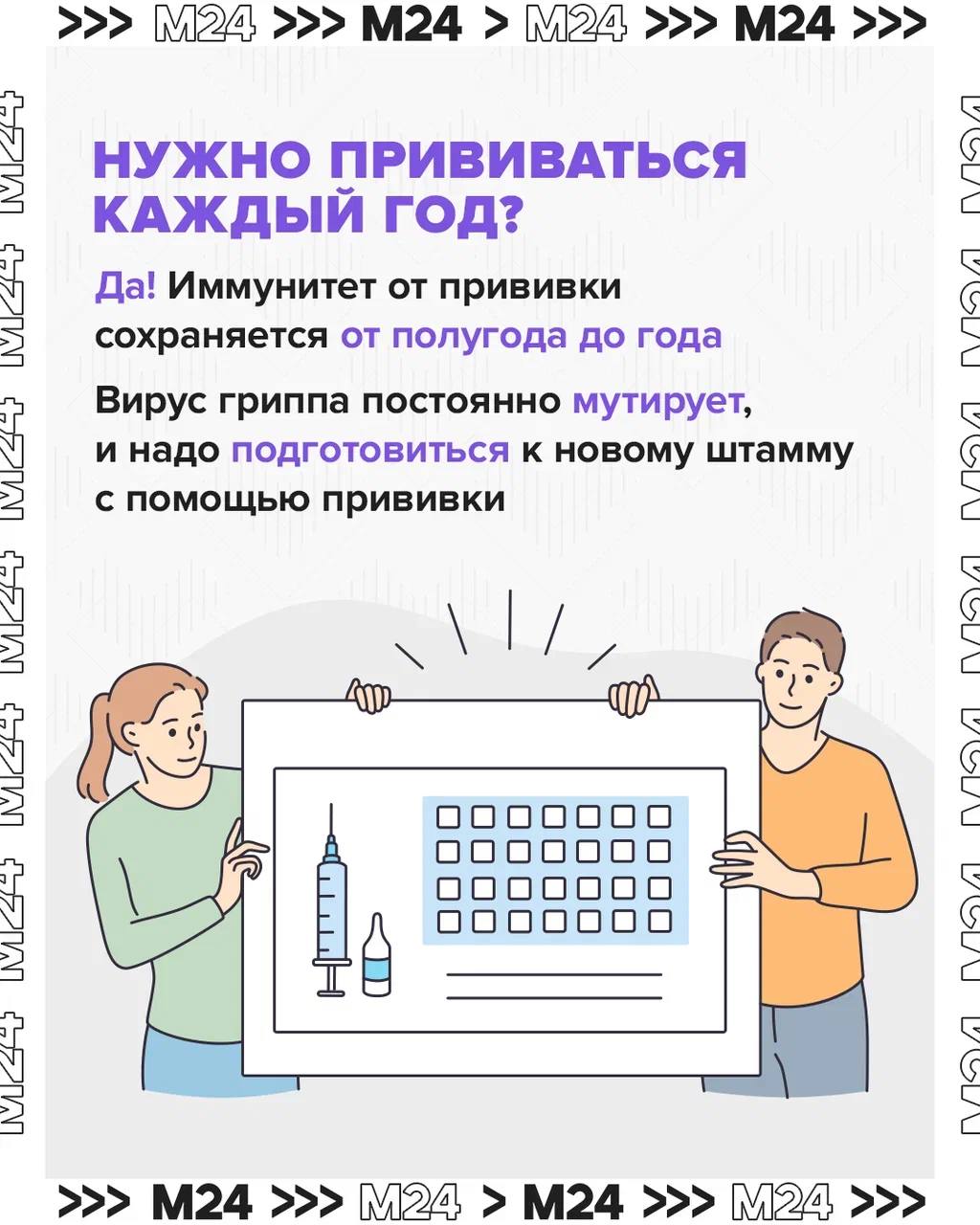 Где привиться рядом с домом, зачем это делать каждый год, можно ли «заболеть от прививки», и почему укол — самый рабочий способ защиты. Сохраняйте, пересылайте родным и приходите за своим щитом.