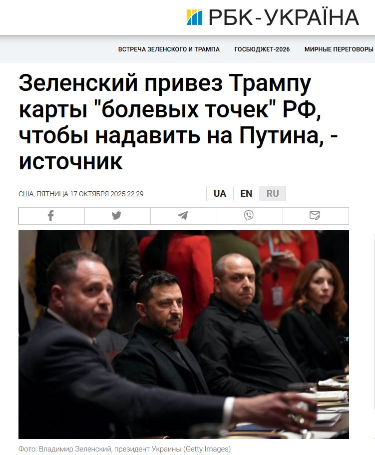 Зеленский прибыл в Вашингтон ещё в четверг 16 октября. Помимо встречи с Трампом, он провёл переговоры с представителями Lockheed Martin — обсуждались поставки истребителей F-16, ракет и усиление украинской ПВО.