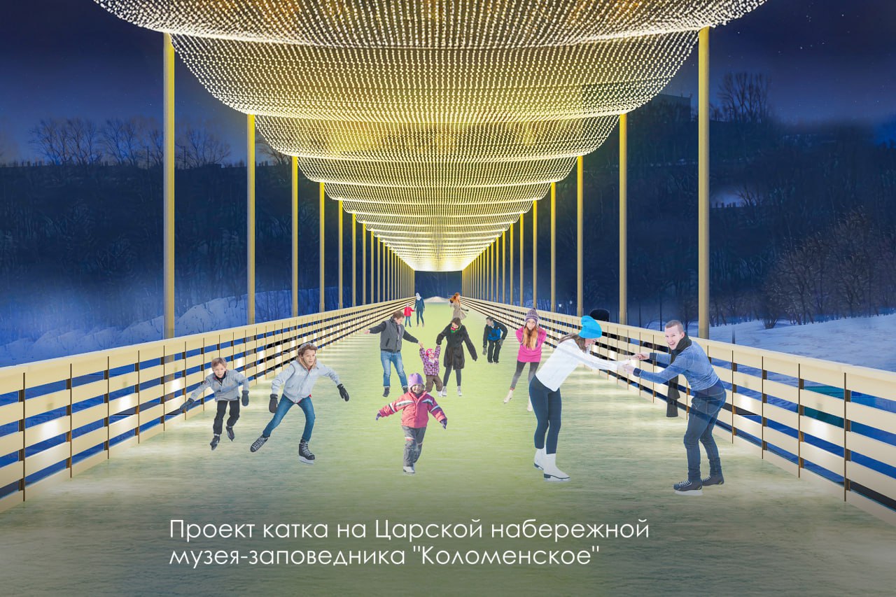 В музее-заповеднике «Коломенском» зальют один из самых длинных катков столицы — 1,7 км вдоль набережной Москвы-реки. Над льдом появится инсталляция «звездного неба».