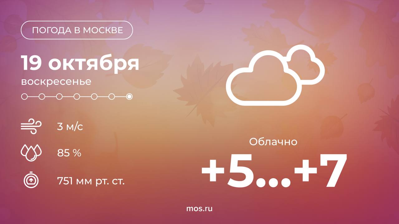 Доброе утро! Сегодня в Москве будет облачно. Температура воздуха днем поднимется до +7 °С.