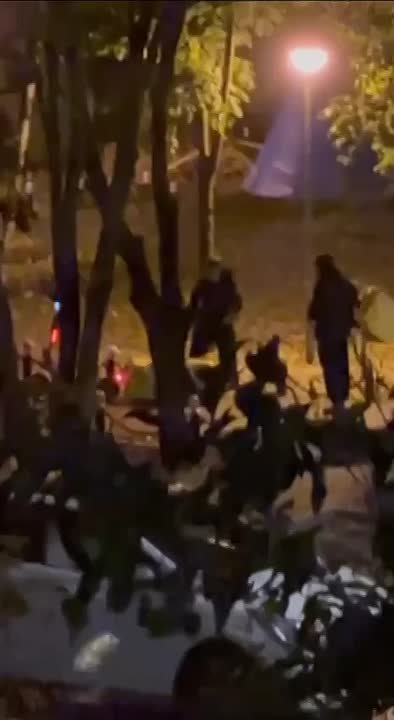 Похоже, что в этом районе Москвы парни с жёлтыми рюкзаками совсем переутомились. Они устроили ночной сброс негативной энергии, яростно швыряя и пиная свои термосумки.