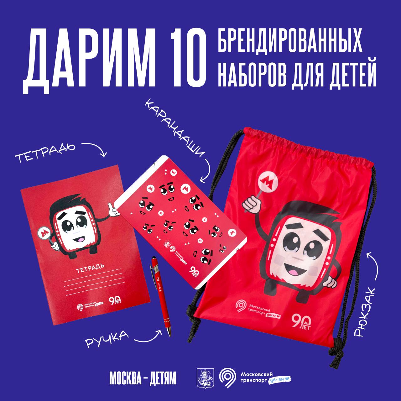 Вместе с Дептрансом Москвы дарим 10 брендированных наборов для детей, которые помогут развить художественные способности. В подарок входит тетрадь, цветные карандаши, ручка и рюкзак от проекта «Московский транспорт. Детям».