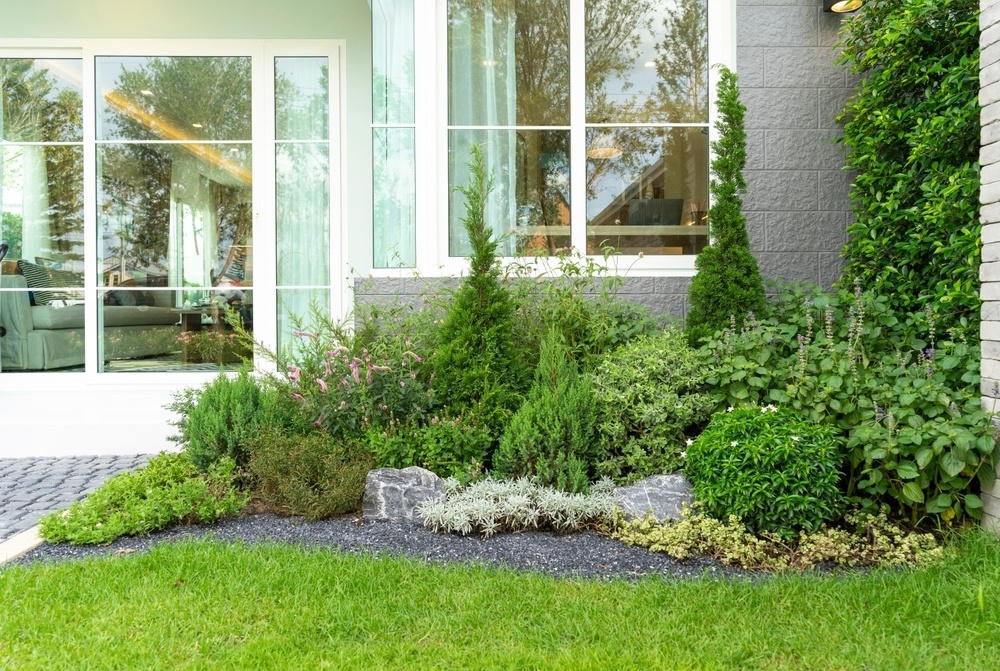 При создании цветника стоит задуматься о безопасности фундамента дома. Зеленая отмостка может заменить традиционную бетонную, но важно создать барьер между растениями и стеной, чтобы избежать подмокания и повреждения фундамента.