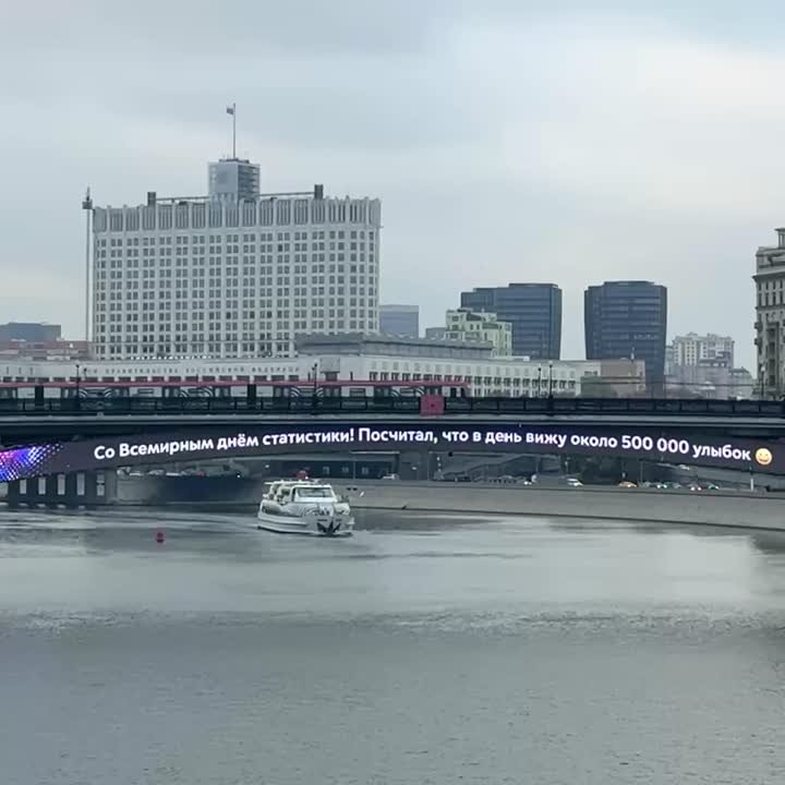 Всемирный день статистики Росстат отмечает на высоте – буквально! Сотни тысяч человек сегодня увидят поздравление над Москвой-рекой – и мы уже посчитали их улыбки!
