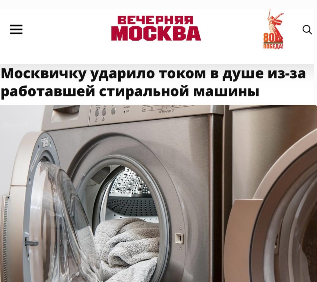 «Жительницу московского района Северное Тушино ударило током, пока она принимала душ - в ванной комнате работала новая стиральная машина.
