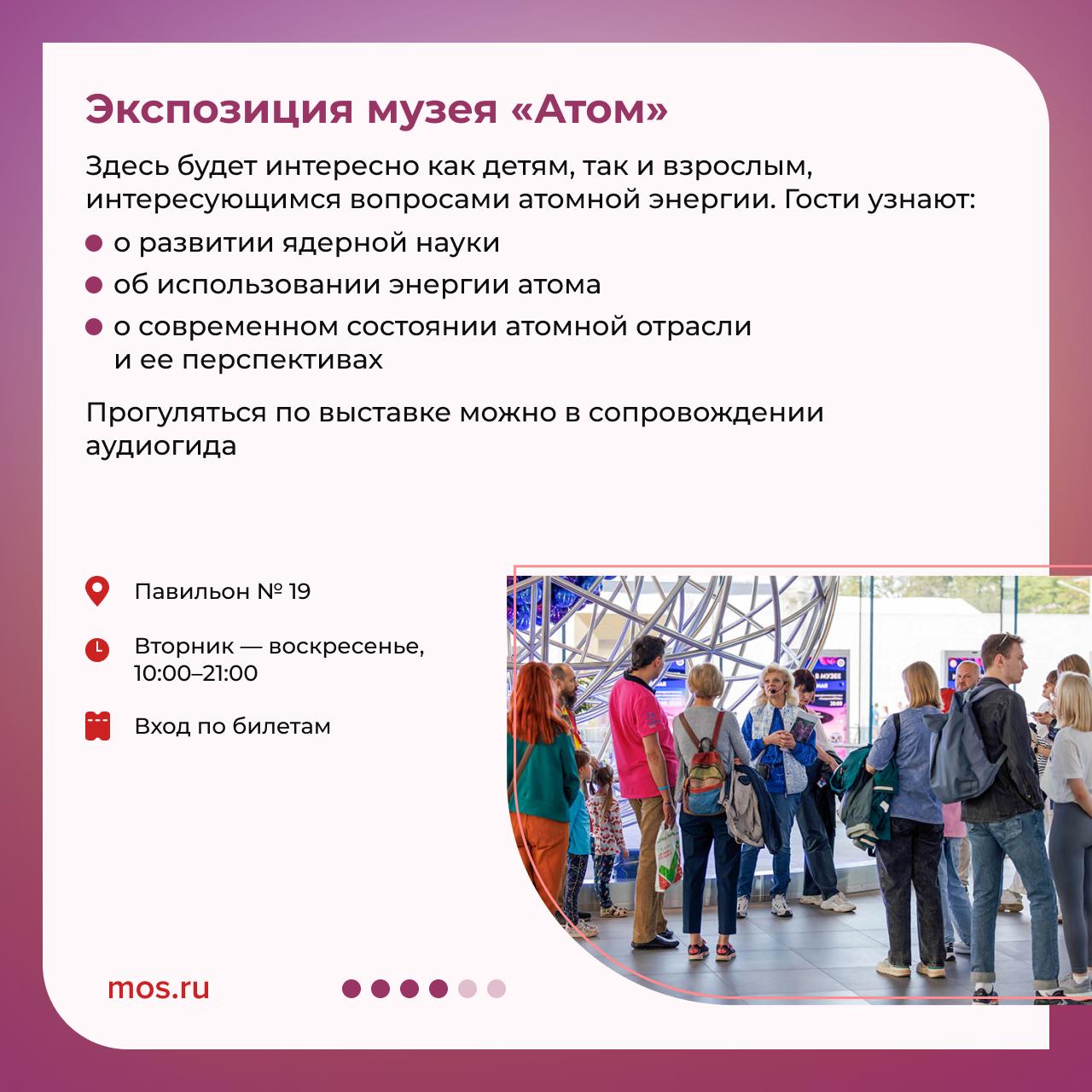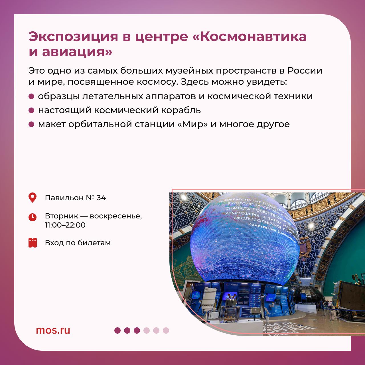На территории ВДНХ работает множество выставочных пространств. Где рассказывают о космосе и куда сходить, чтобы посмотреть картины известных русских художников, читайте в наших карточках.